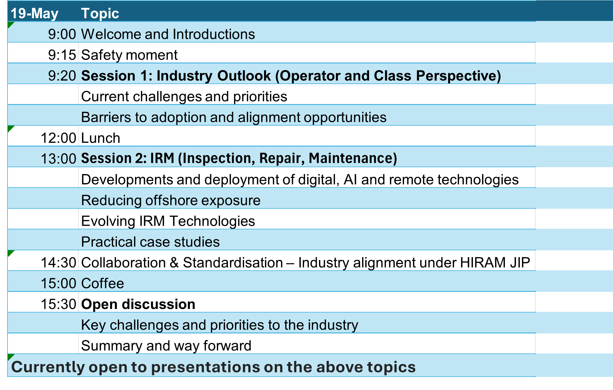 The objective of this Hull Structural Integrity (HSI) Open Forum is to discuss in a wider group the structural integrity challenges faced by operators, class and regulators, and identify ways forward to find practical solutions.
